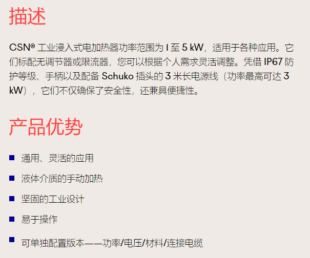 SCHNIEWINDT 工业浸入式加热器EIT 型系列